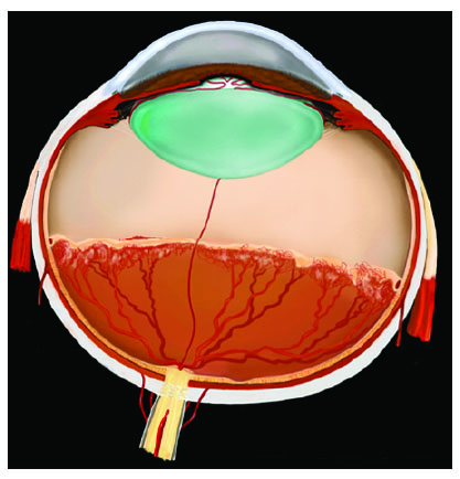 As the ROP advances, fragile new abnormal blood vessels grow toward the center of the eye (Stage 3). At this point, the eye is still capable of repairing itself.